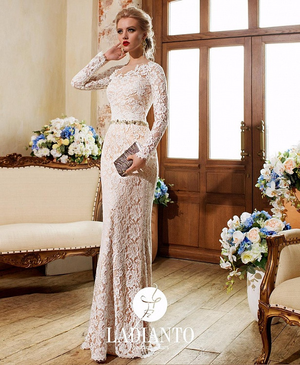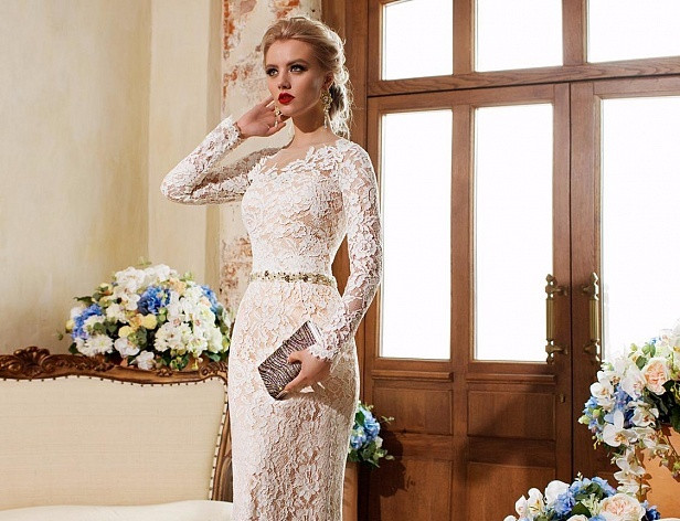 Элегантное свадебное платье, выполненное из кружева, подчеркивающее достоинства фигуры. Спинка на европейской пуговичной застежке.