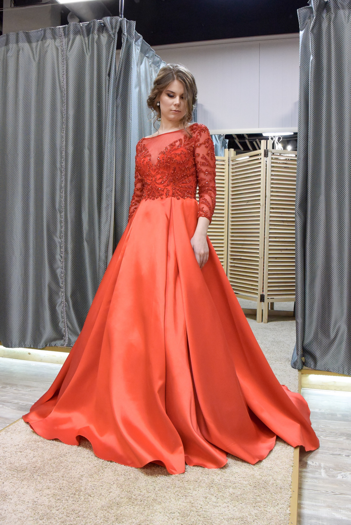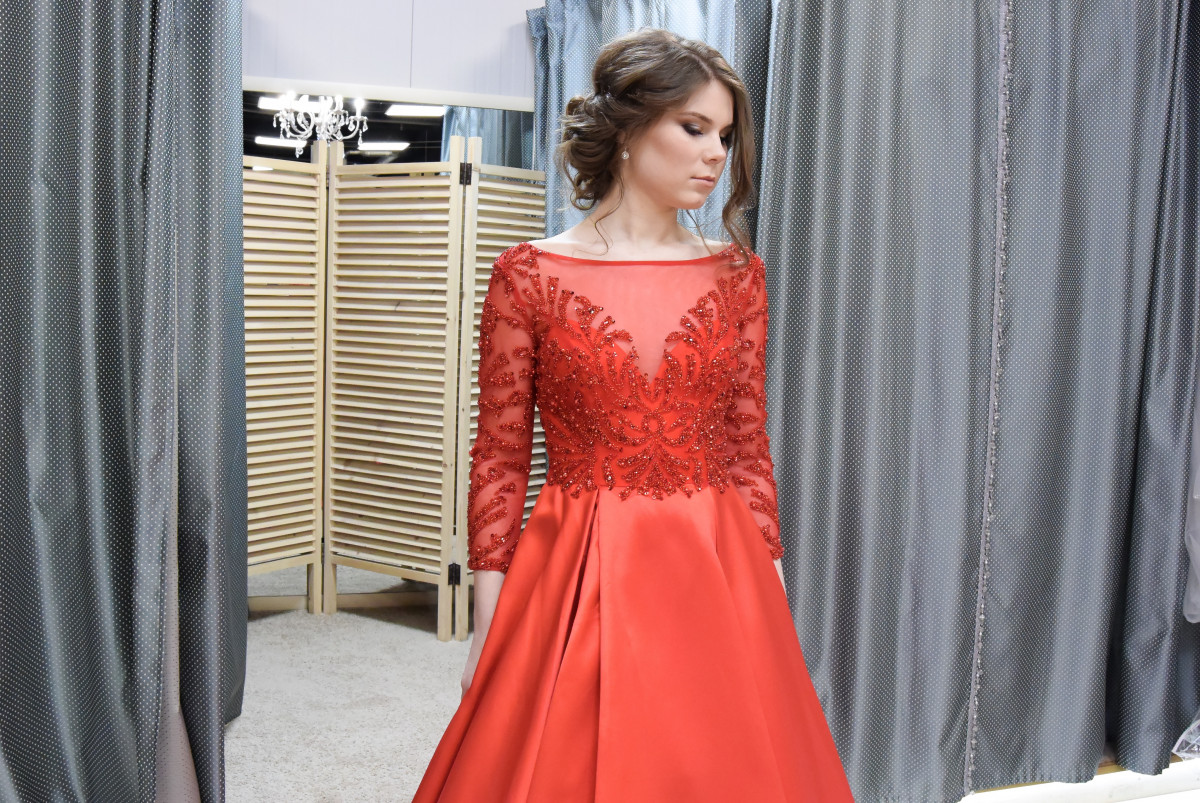 Роскошное платье! Россыпь камней по лифу и рукавам создает еще более торжественный вид.